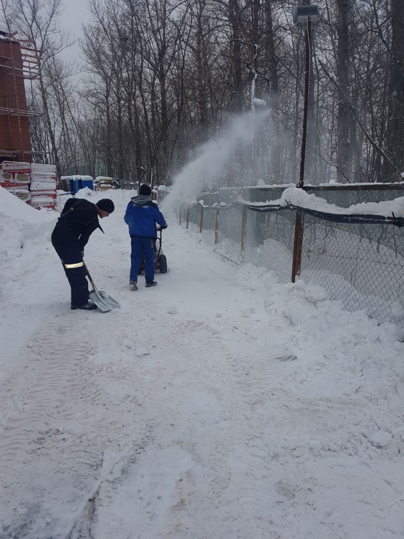 С помощью мобильной уборочной техники с площадки был убран снег, обильно выпавший в последние дни, и более компактно сложены строительные материалы, имеющиеся на площадке.